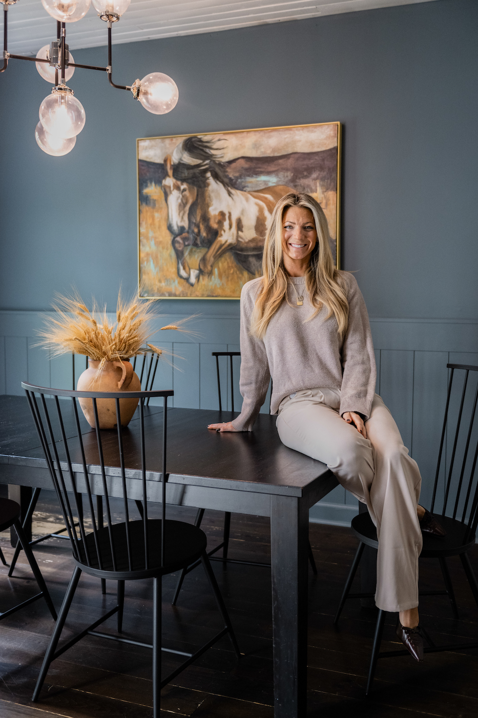 Chelsea Handley is the kind of person who includes her dog when she lists her family members and believes the number of sap buckets on the sugar maples and haunted tales in the town lore tell you almost everything you need to know about a place. She is a mother and an artist and a sports fan and an outdoors enthusiast — probably in that order. As a kid, she roamed the woods, snacking on wild blackberries, fishing from a canoe with her family, and of course building forts. When she wasn’t outside, she was painting or drawing her adventures and the animals she met. Or she was sketching blueprints of her dream home, creating the earliest iterations of Chelsea Handley’s art.