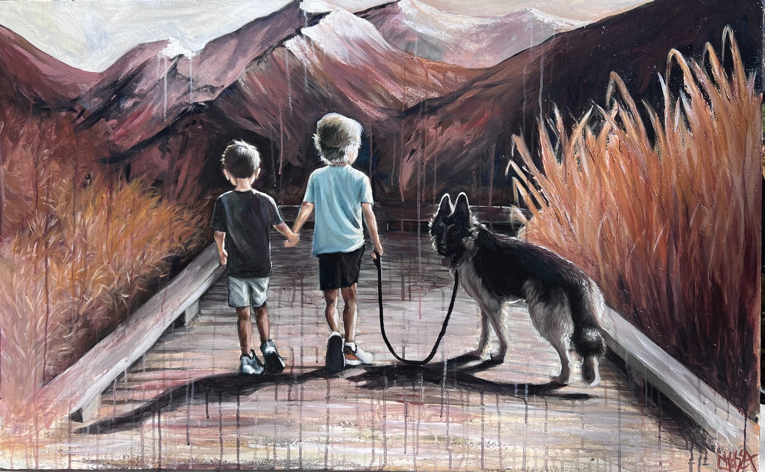 Much of Chelsea Handley’s art is by commission, resulting in a truly diverse range of subjects. Handley stays nimble as she determines how best to represent them. For example, when completing a life size painting of Jimmy Page, Handley used actual pieces of wood to replicate Page’s guitar. She added mother-of-pearl inlays, ivory tuners, and strings to the piece to produce a captivating 3D work.