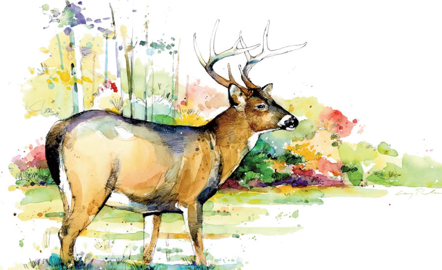 As a wildlife and outdoor illustrator, Palmer hasn’t found the time to pursue the gallery route. Instead, he juggles many different jobs. As he waits on approval for sketches on one job, he’s finishing art for another. Turnaround time normally takes two to three weeks from start to finish, but it can take a week or sometimes even less. “As far as the finished art is concerned, it’s kind of like eating—I prefer to finish things in one sitting,” explains Palmer.